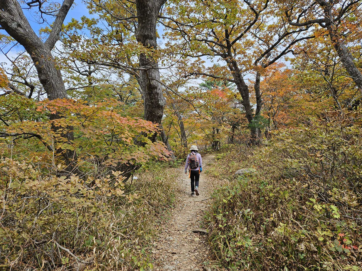 이따금씩 암릉을 벗어나 숲으로 풍경이 바뀔 때 마다 단풍의 색이 점점 진해진다.