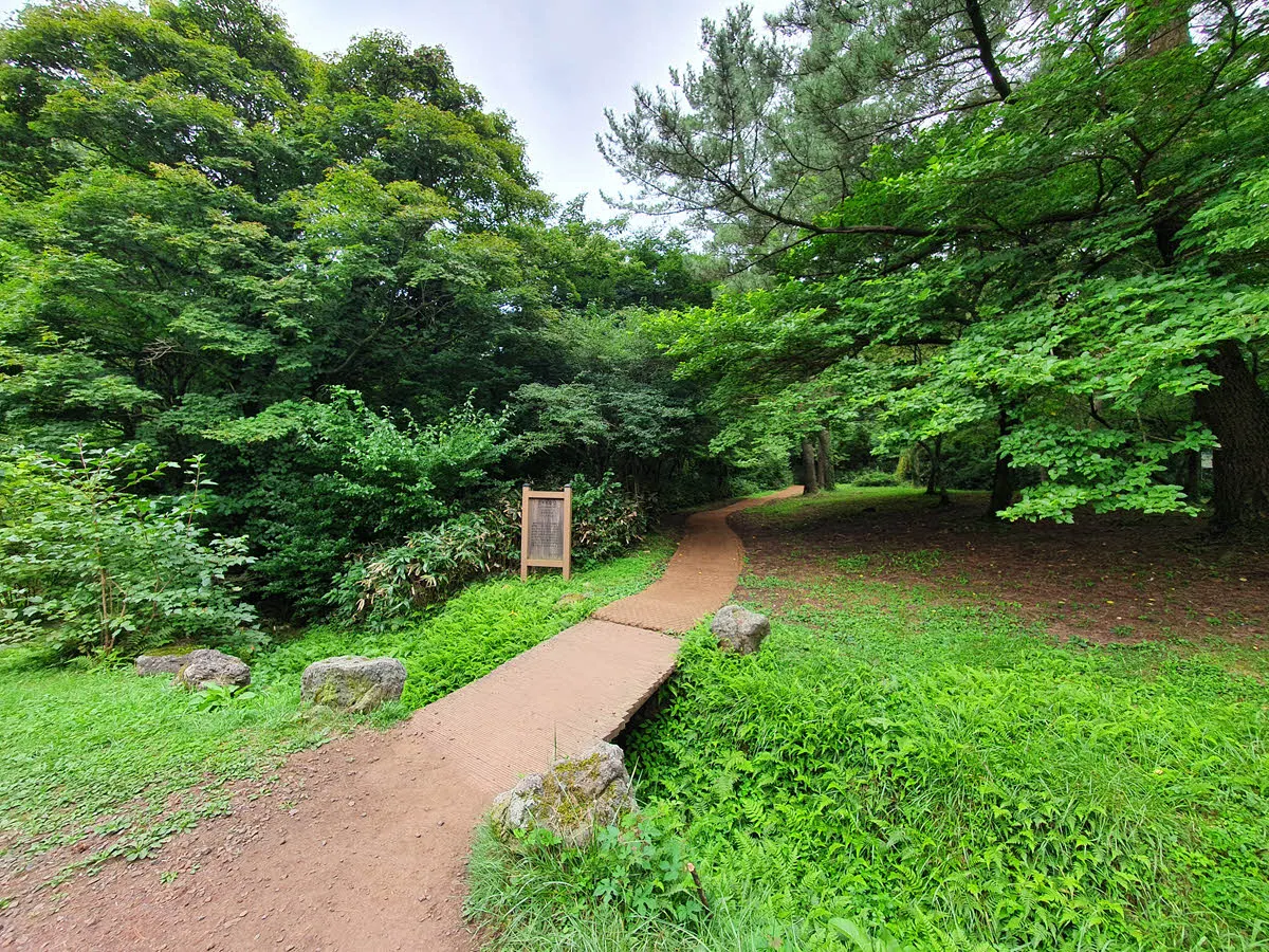 절물자연휴양림 입구에서 오른쪽으로 몇백미터만 걸어가면 길 건너에 한라산 둘레길 8코스 절물조릿대길 입구가 나온다.