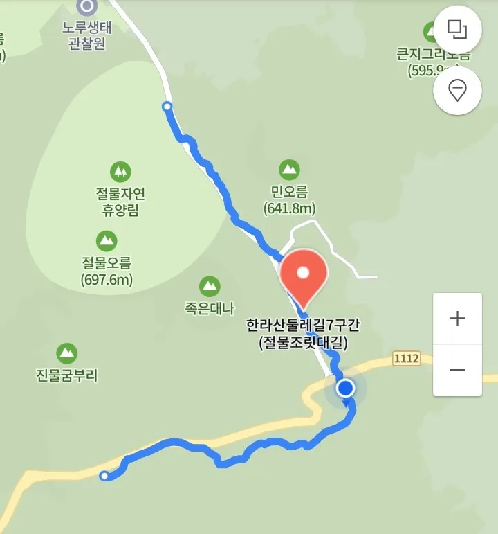 이쯤에서 위치를 보자. 파란색 동그라미 지점이다. 절반이상 걸었다.