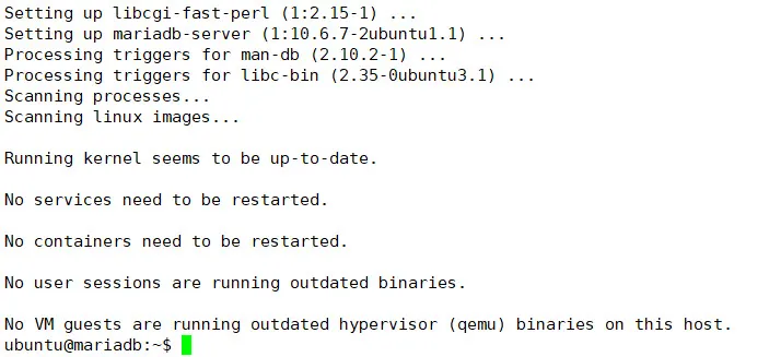 LAMP의 DB서버로 사용할 리눅스(Ubuntu 20.04) 서버에 로그인 하여 MariaDB를 설치한다.