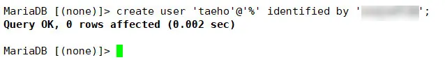 다음은 워드프레스에서 DB에 접속할 때 사용할 접속용 계정을 만든다.