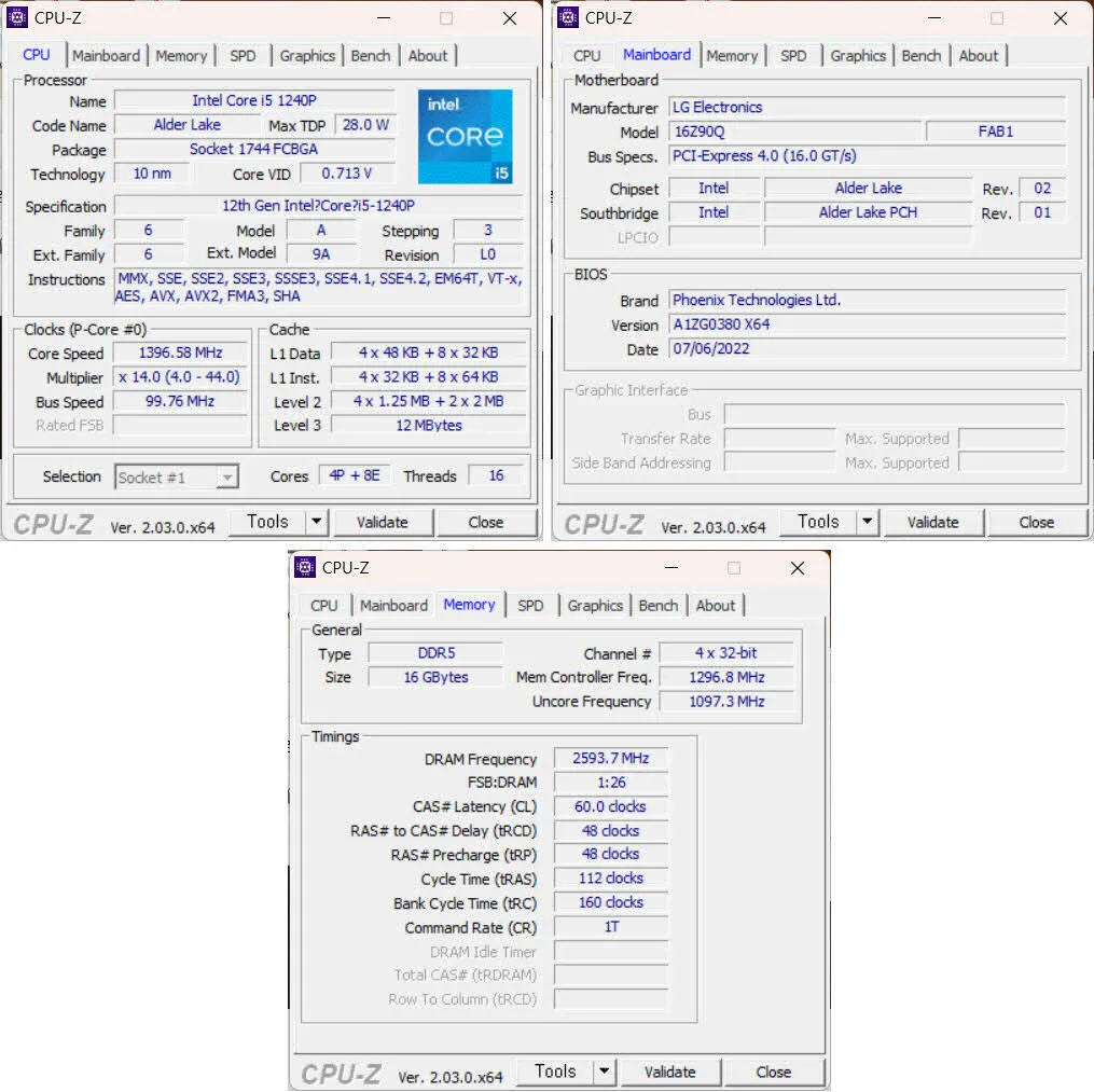 - CPU : 인텔 12세대 i-5 1240P (12코어 : 4P코어, 8E코어, 코드명 엘더레이크)