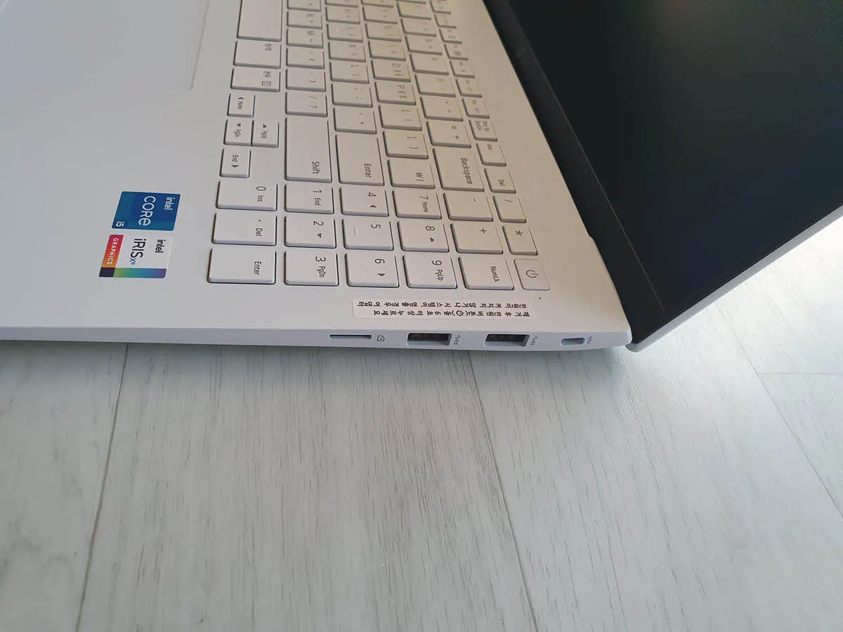 그램의 우측 포트 모습. 왼쪽에 Micro SD 카드 슬롯이 있고중앙에 Type A USB 3.2 Gen 2 규격을 지원하는 포트2개. 그리고 켄싱턴락이 보인다.
