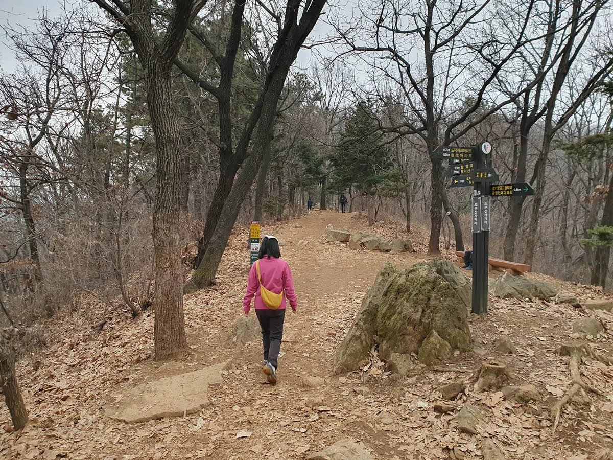 우리는 아침 산책을 나온 것이므로 여기서 향군회관 방면으로 내려가 차를 주차해 놓은 도덕산 공원으로 간다.