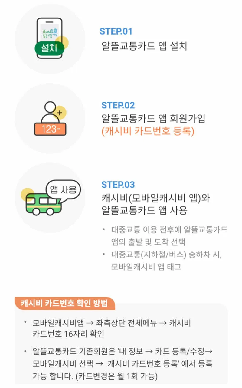 모바일 캐시비 카드번호를 알뜰교통카드로 등록하는 방법은 모바일 캐시비 앱에도 잘 설명되어 있다.