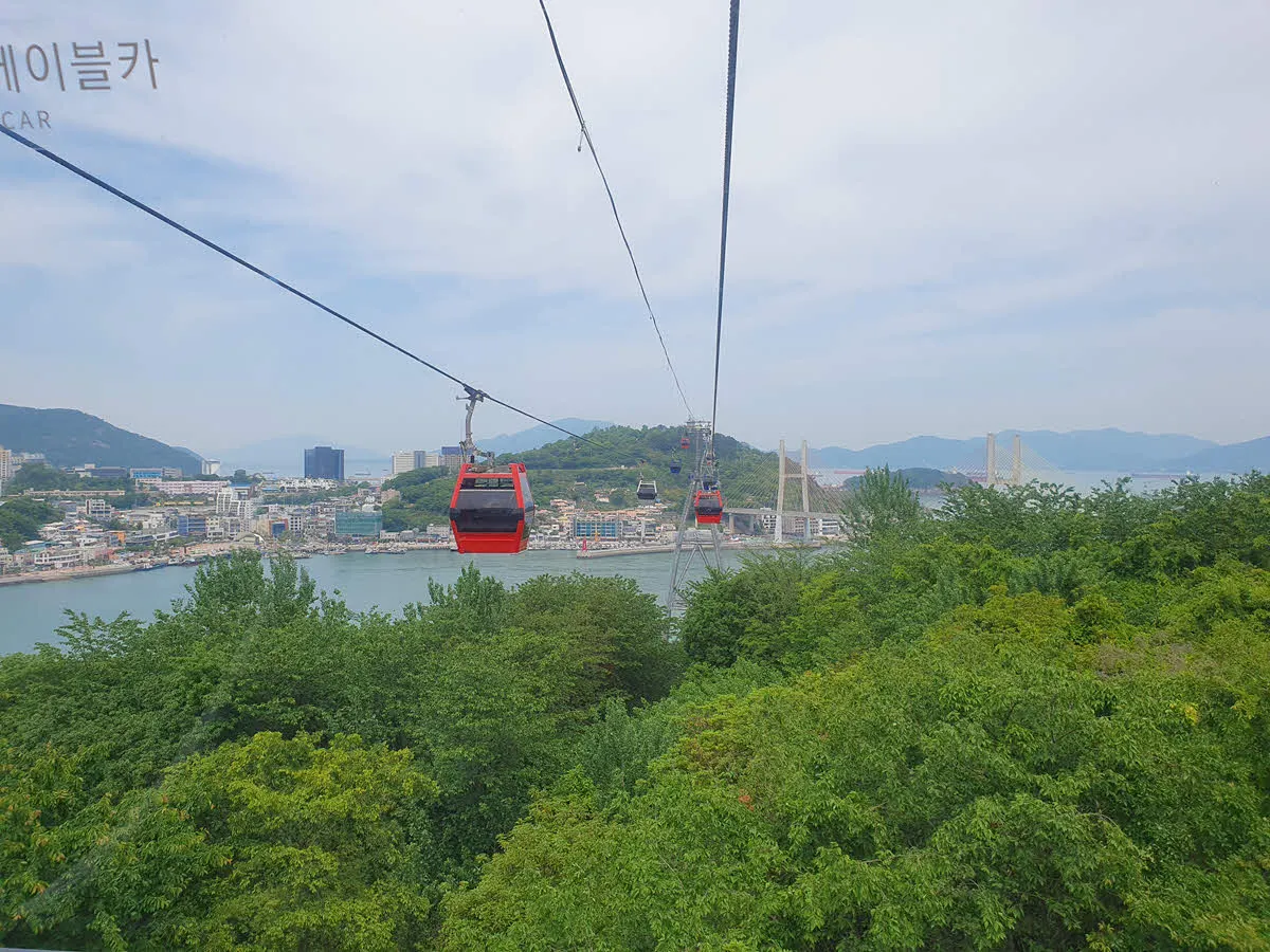 아래 사진은 놀아정류장 전망대에서 바라본 여수해상케이블카의 모습.
