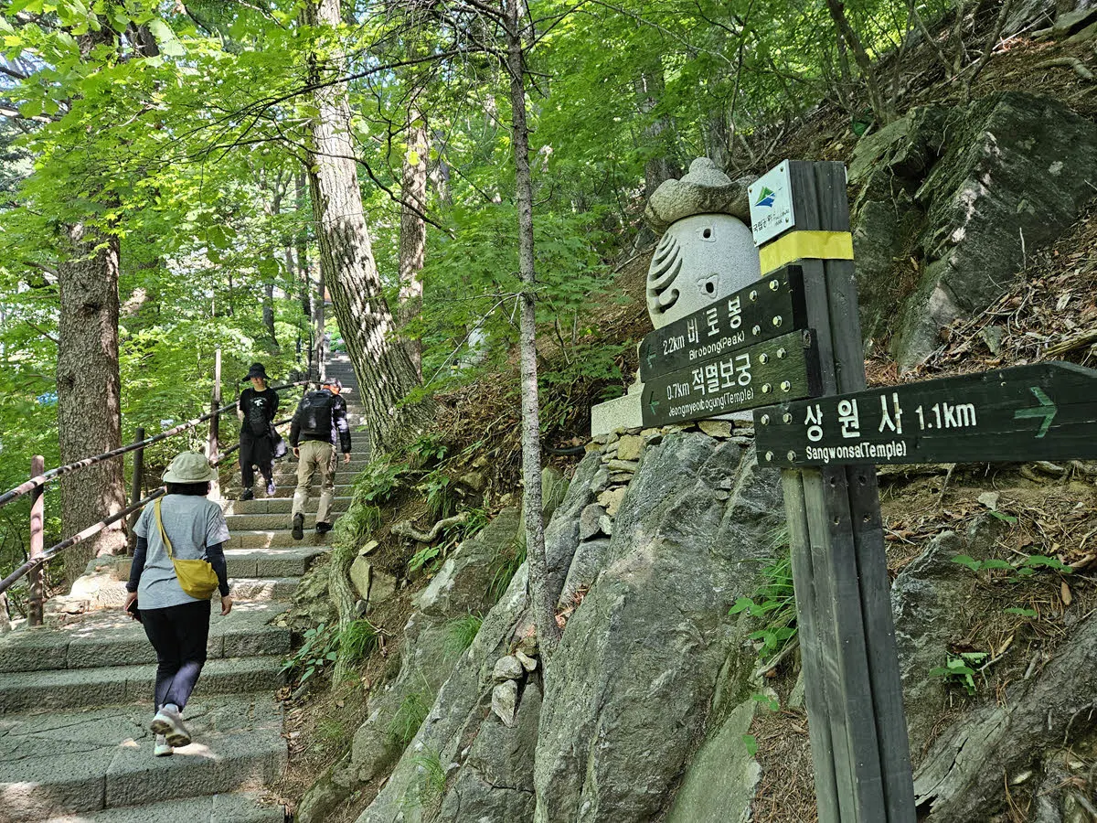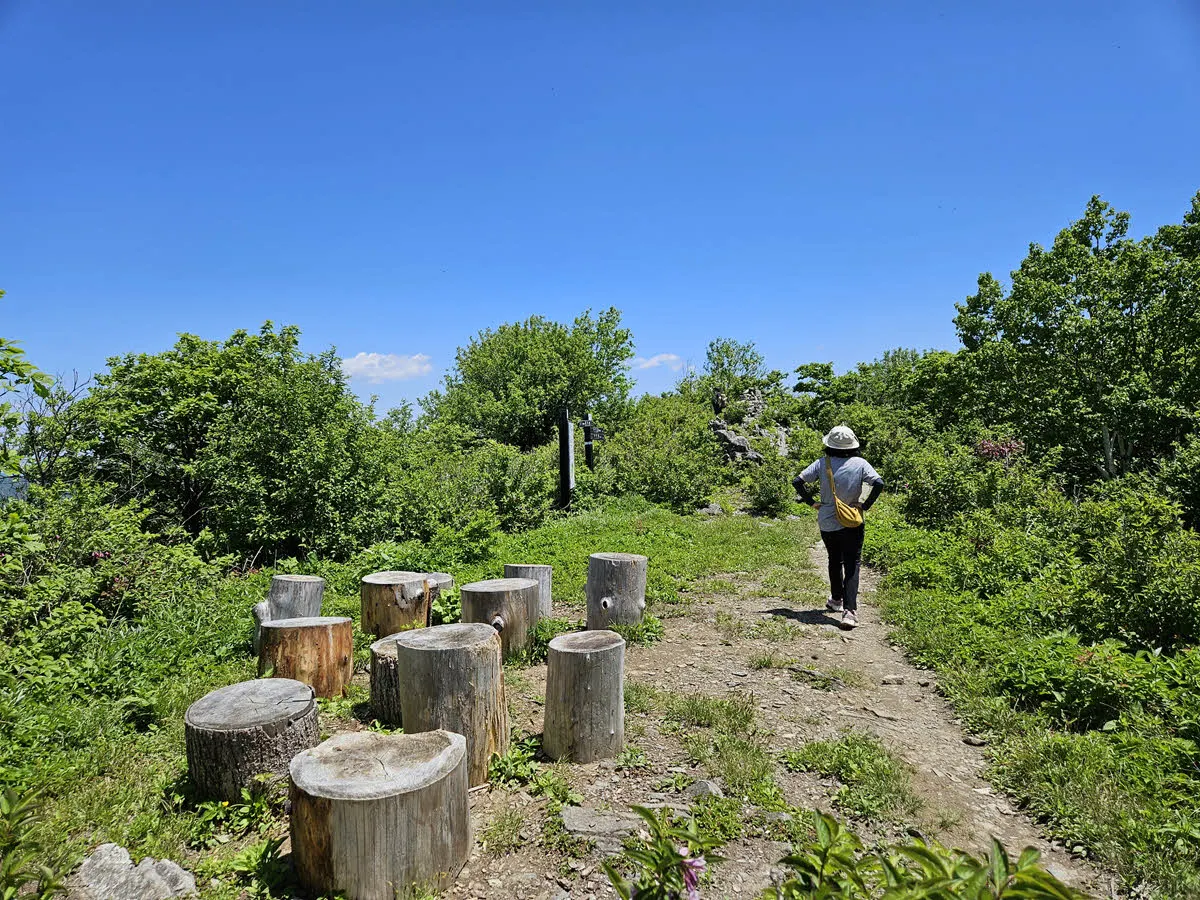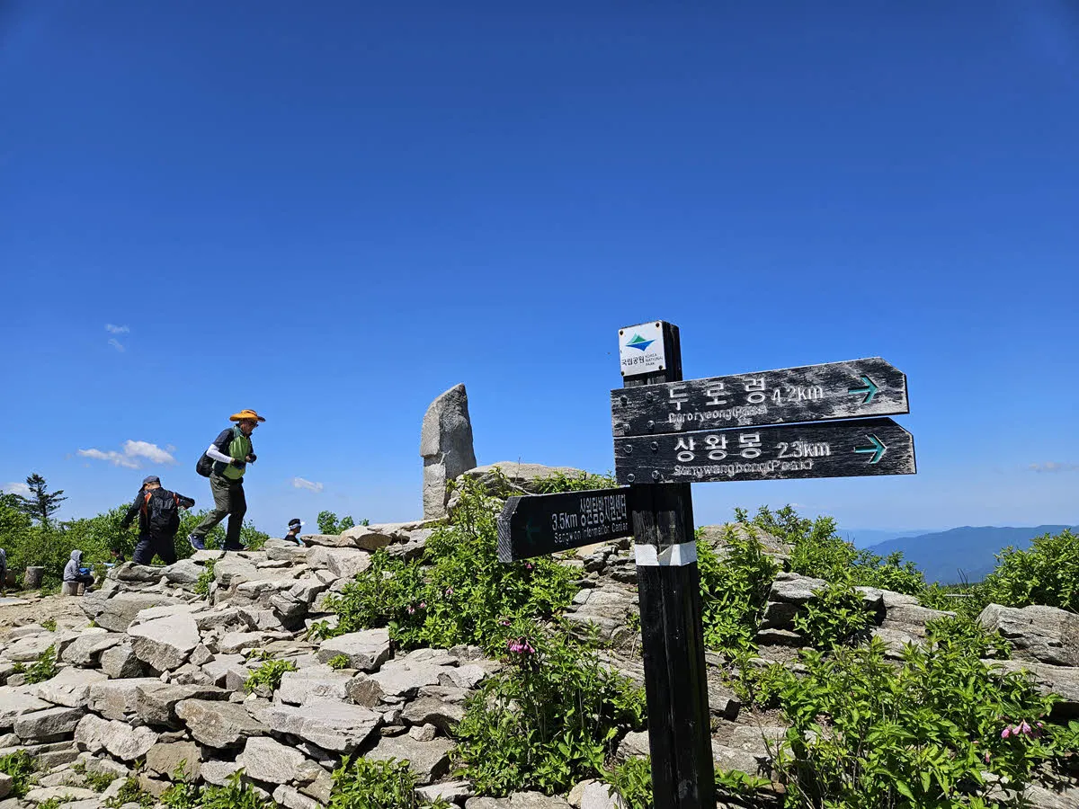오대산의 최고봉인 비로봉을 포함하는 하이킹 코스는 차로 갈 수 있는 가장 높은 지점인 상원사 주차장에서 출발한다.
