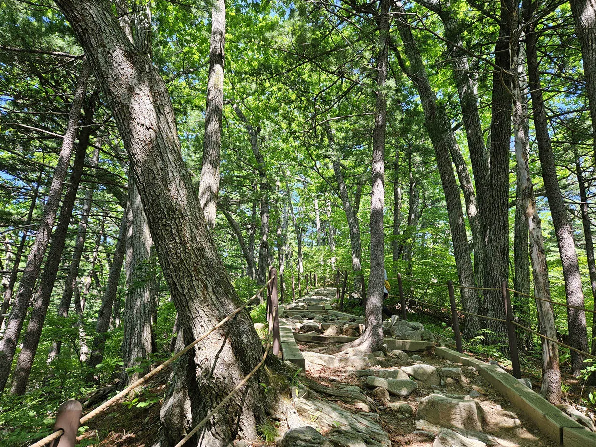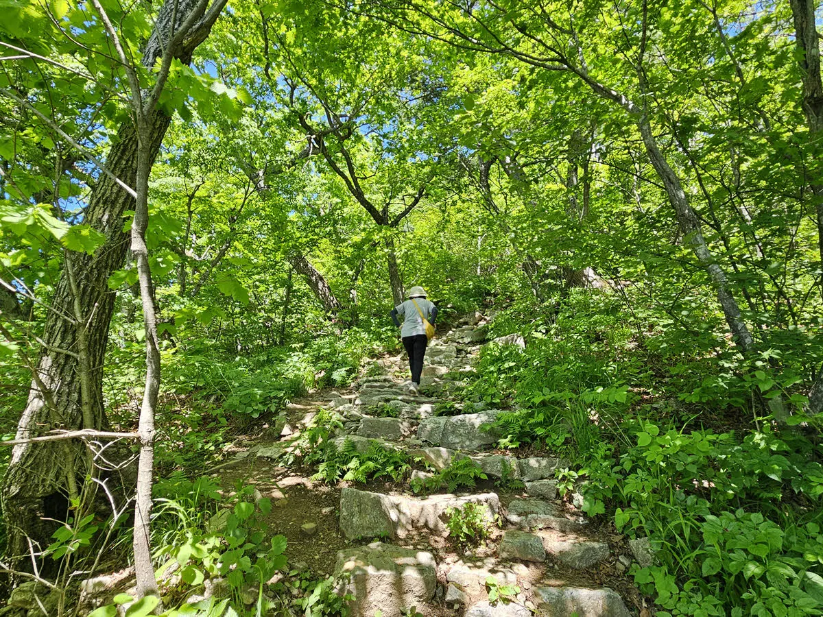 흙길이 어느새 돌계단으로 바뀌며 더 가팔라 진다.
