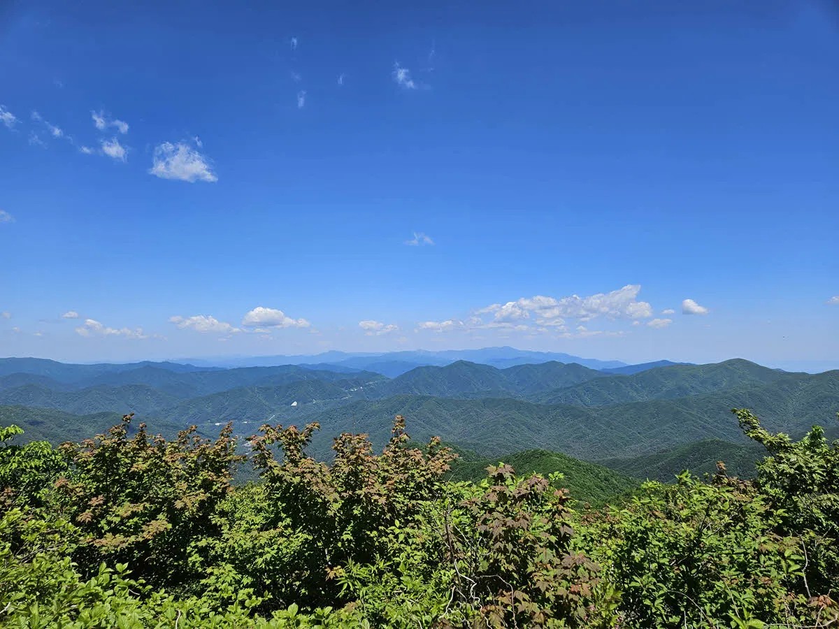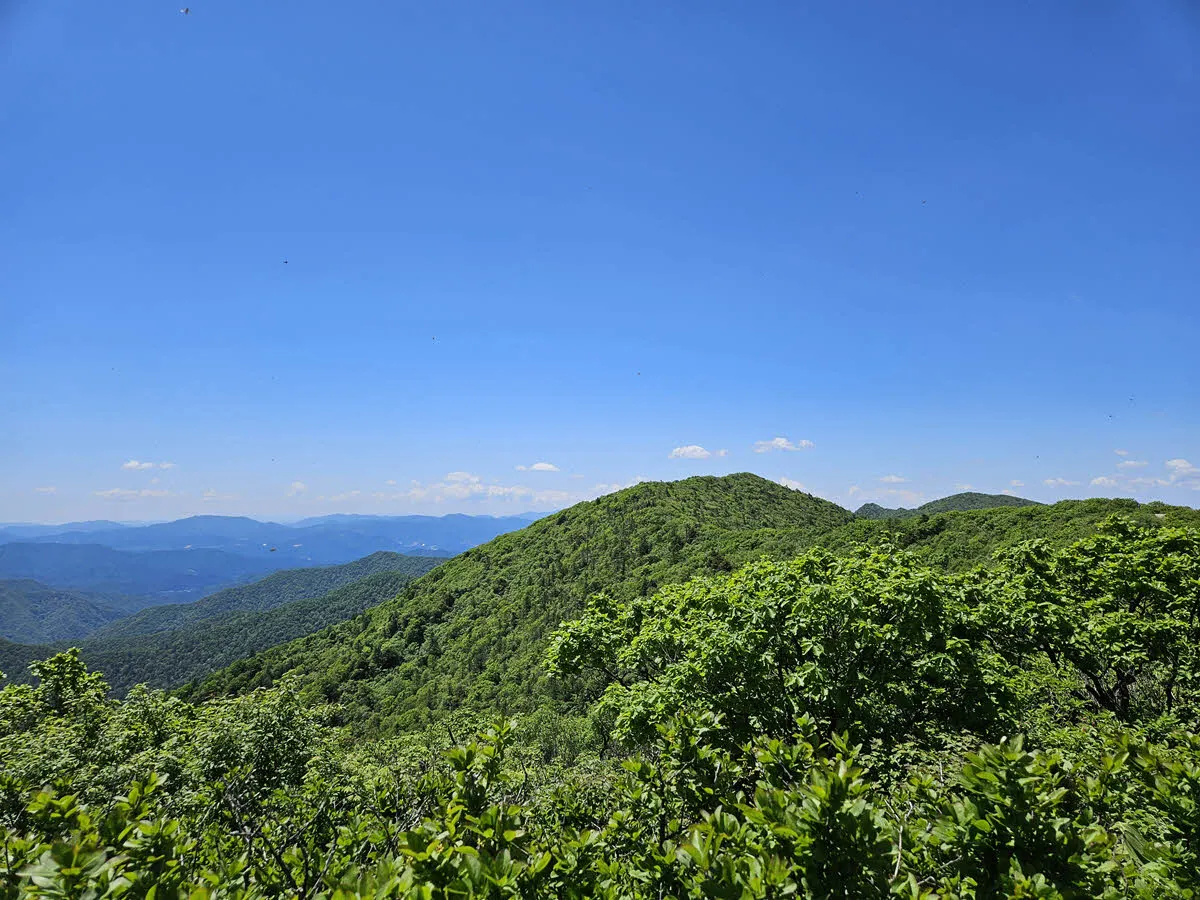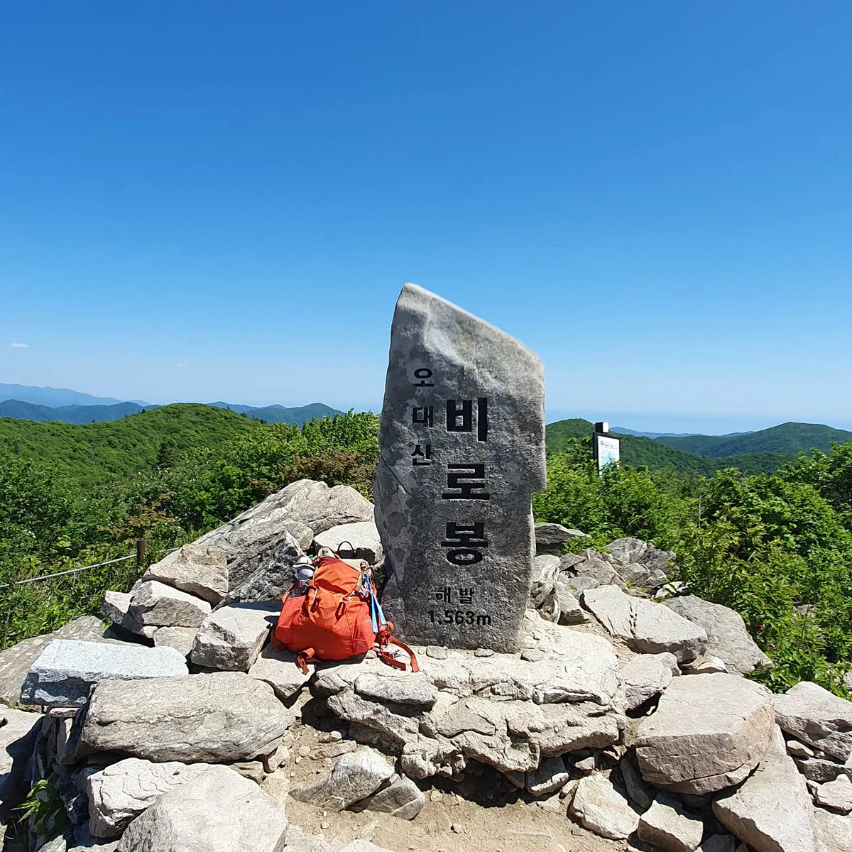 비로봉에는 사방을 둘러봐도 산 뿐이다. 우리나라 강원도 산의 풍경이 그렇듯… 하지만 파란 하늘과 초록 산의 물결은 언제봐도 지겹지 않고 상쾌함을 선사한다.