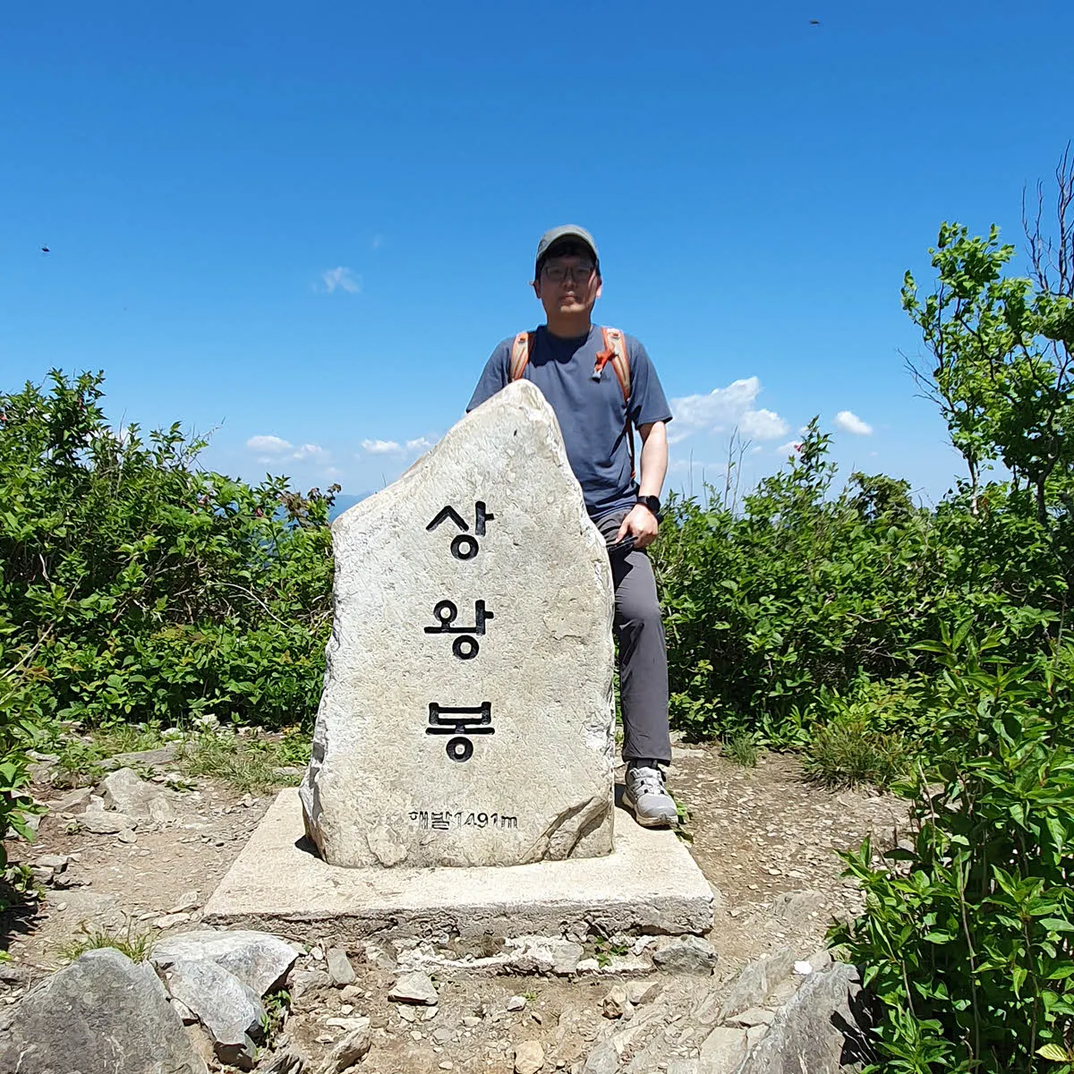 그런데 그늘이 없다. 없는 줄 알았던 정상석이 돌무덤을 지나니 보인다.