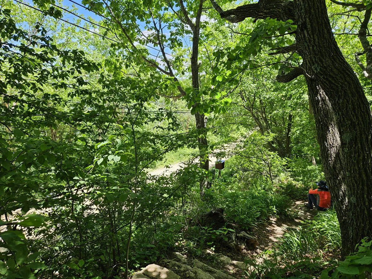 우리는 상원탐방지원센터로 가는 길 중간에 북대 미륵암으로 가는 길이 있다는 맵을 믿었는데… 길을 찾지 못했다.