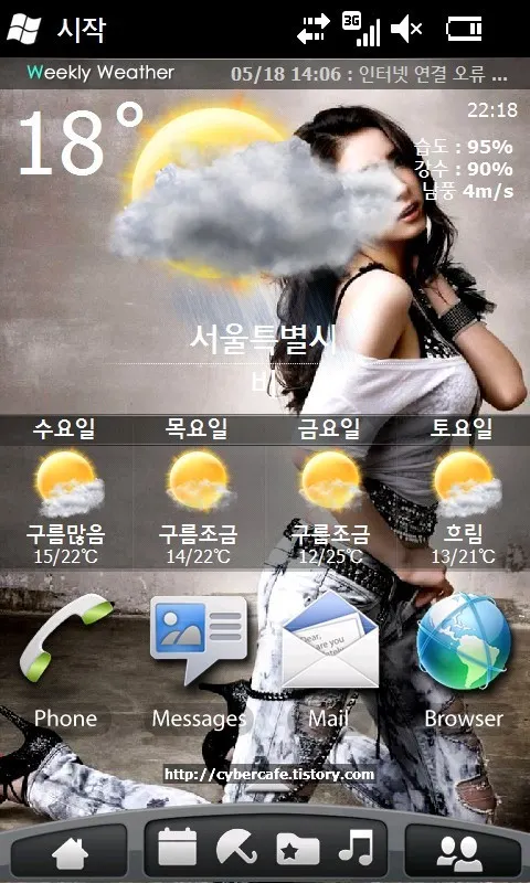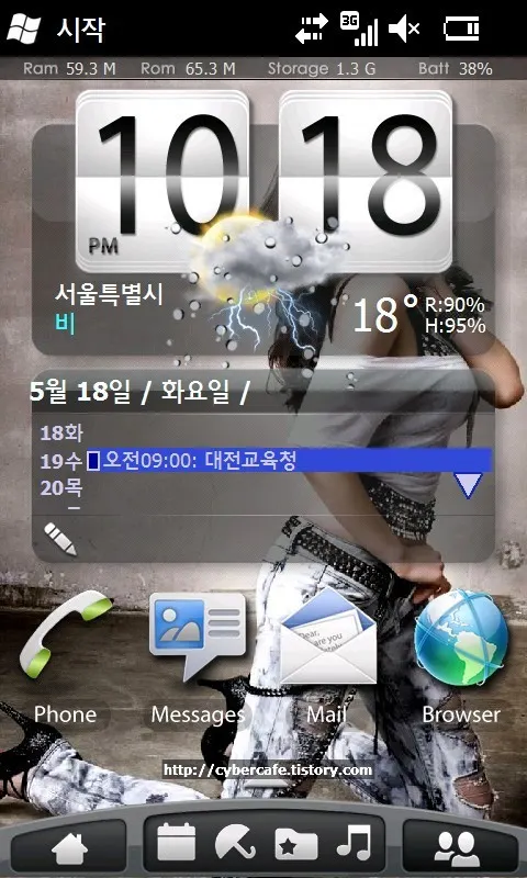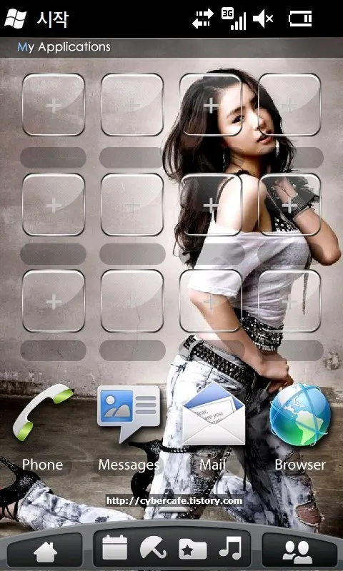 HS++과 몇몇 유틸을 이용해 옴니아2의 초기화면을 HTC의 레전드와 유사하게 변경했다.