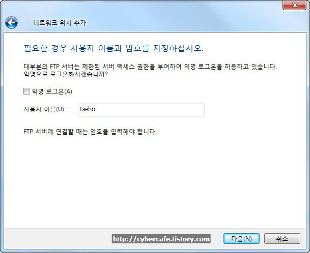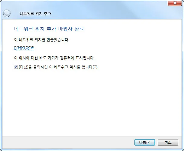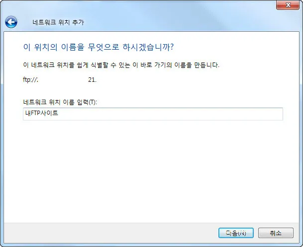 이 FTP사이트를 탐색기에 붙인 뒤 보여줄 이름을 지정합니다.