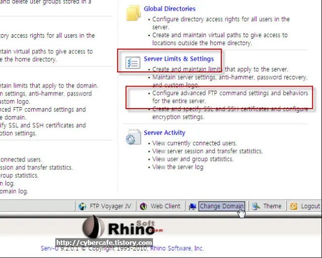 3. 아래 화면에 보면 “Server Limits & Settings” 메뉴가 있고 그 아래에