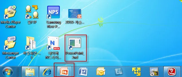 이렇게 하면 현재 로그인 한 Administrator 계정의 권한으로 실행된 파워포인트와 새롭게 만든 계정의 권한으로 실행된 파워포인트 두개의 프로그램이 각기 다른 창에 표시된다.