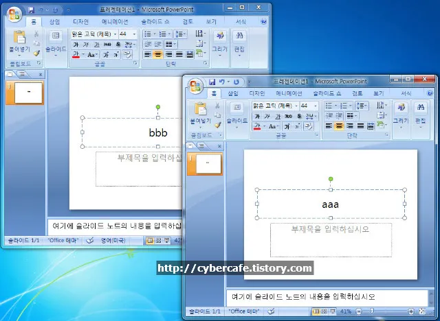 8. 서로 다른 창으로 실행된 두개의 파워포인트 화면이다.