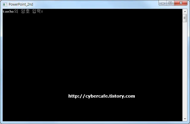 7. 방금 만든 바탕화면의 바로가기를 더블클릭하여 실행하면 아래 화면처럼 해당 계정의 패스워드를 물어본다. 패스워드를 입력하면 파워포인트가 별도의 창으로 실행된다.