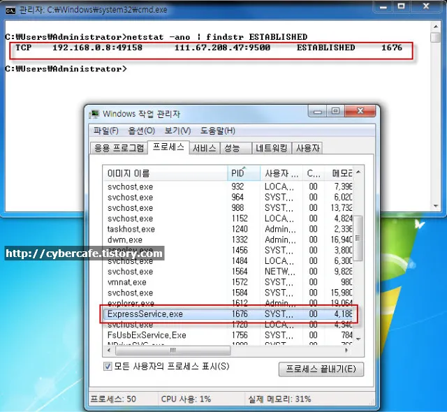 이루어져 있고 프로세스의 이름은 ExpressService.exe 이다.
