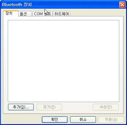 다행스럽게도 아이콘이 있다면 Bluetooth 장치 아이콘을 더블클릭한다. 그러면 다음과 같이 블루투스 장치 목록 화면이 보일것이다.