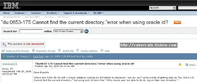 AIX 서버에서 특정 계정(이 경우는 oracle 등등~)에서 du 명령을 실행하면 아래와 같은 에러가 발생하면서 정상적으로 실행되지 않는 경우가 있다.