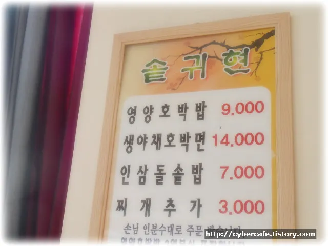 일단 메뉴판을 봤다. 영양호박밥 1인분 9000원…