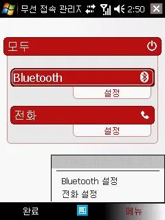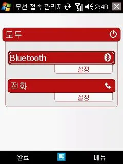 그리고 M4650의 제어판에서 무선접속 관리자를 실행하여 Bluetooth를 설정 상태로 한다. 방법은 그냥.. Bluetooth 라고 되어 있는 부분을 한번 콕~~찍어주면 된다.