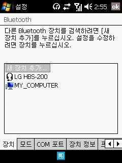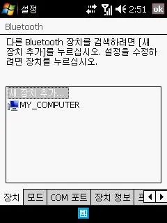 이 화면은 M4650의 블루투스 기능을 이용해 연결할 상태편 장치를 추가해주는 화면이다. MY_COMPUTER는 내가 블루투스를 이용해 Active Sync를 수행하기 위해 등록한 내 노트북이다.
