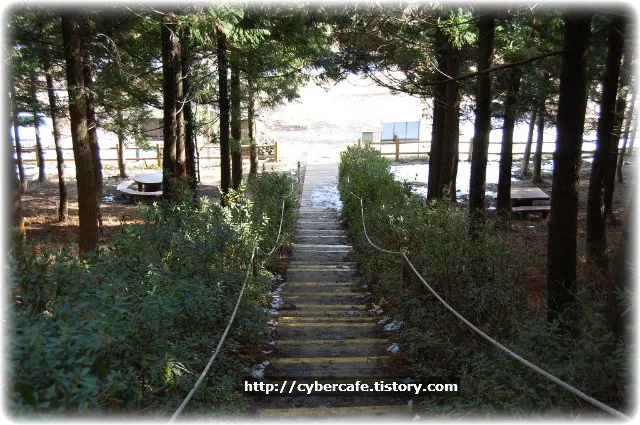 차를 주차하고나면 바로 입구가 보인다. 오름정상의 분화구까지 가는 데는 어른이면 20~30분이면 충분히 오를 수 있다. 올라가다 보면 중간 중간 뒷쪽(동쪽)의 풍경을 보게되는데 그 풍경이 정말 아름답다.