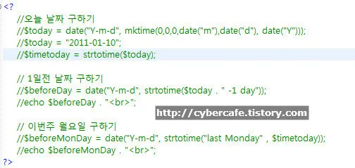//$beforeDay = date(“Y-m-d”, strtotime($today . ” -1 day”));