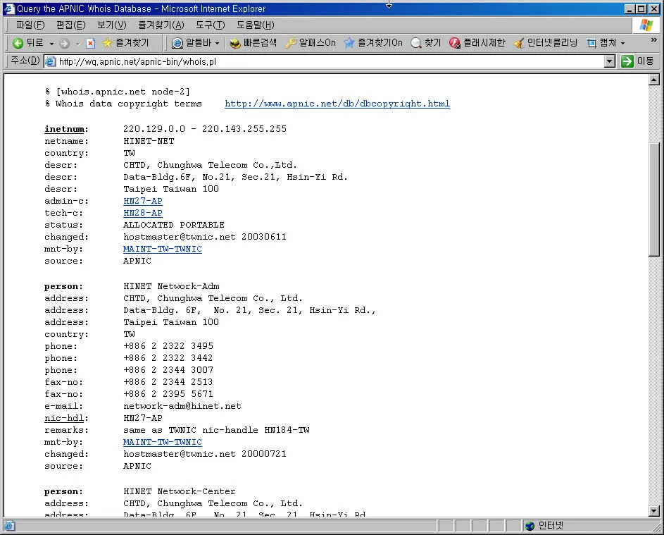 IP를 추적한 결과 다음과 같이 대만의 네트워크 회사가 나온다.