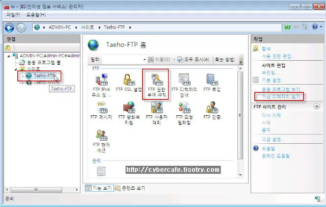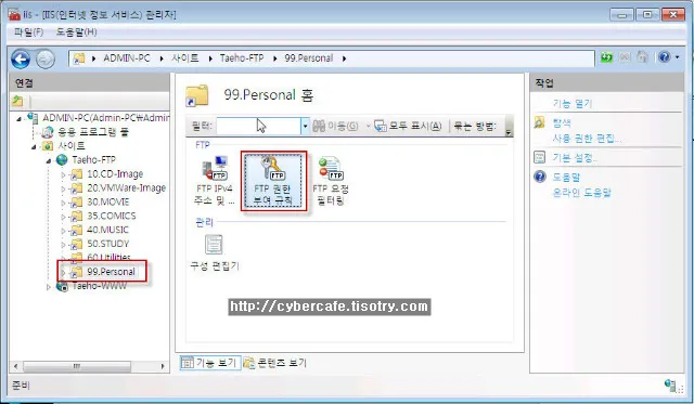 계정을 생성하고 나면 IIS의 FTP서버에 가상디렉토리를 추가하고 생성한 계정에 대해 접근권한을 부여할 수 있습니다.