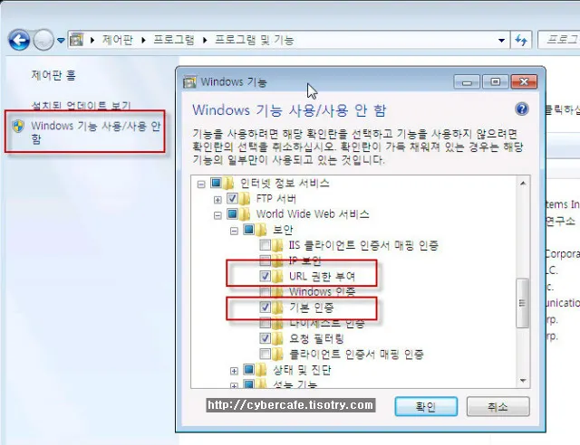 1. Windows 7에 IIS 서버와 인증모듈을 설치 한 뒤