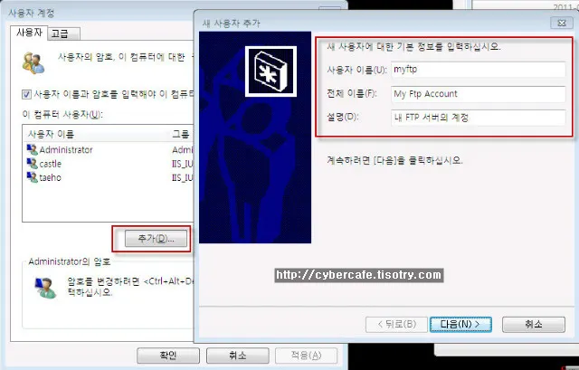 IIS/FTP에서만 사용할 수 있는 계정 추가하기