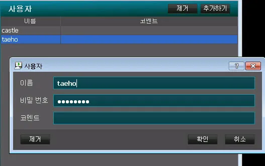 등록된 서버를 터치하면 ID와 패스워드를 입력해야 한다.