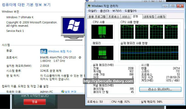 다만 큐라우드 서버가 동영상을 컨버팅해서 보내주기 때문에 스마트폰에서 직접 재생이 되지 않는 영상도 재생이 가능하다는 장점이 있다. 하지만 이때 PC의 성능이 딸린다면 PC의 CPU 사용율이 급증하게 된다. 필자의 경우 아톰듀얼CPU를 사용하는 저사양의 PC인데 동영상을 스트리밍할 때 컨버팅 때문인지 CPU사용율이 90% 이상으로 계속 유지되는 것을 확인할 수 있었다.