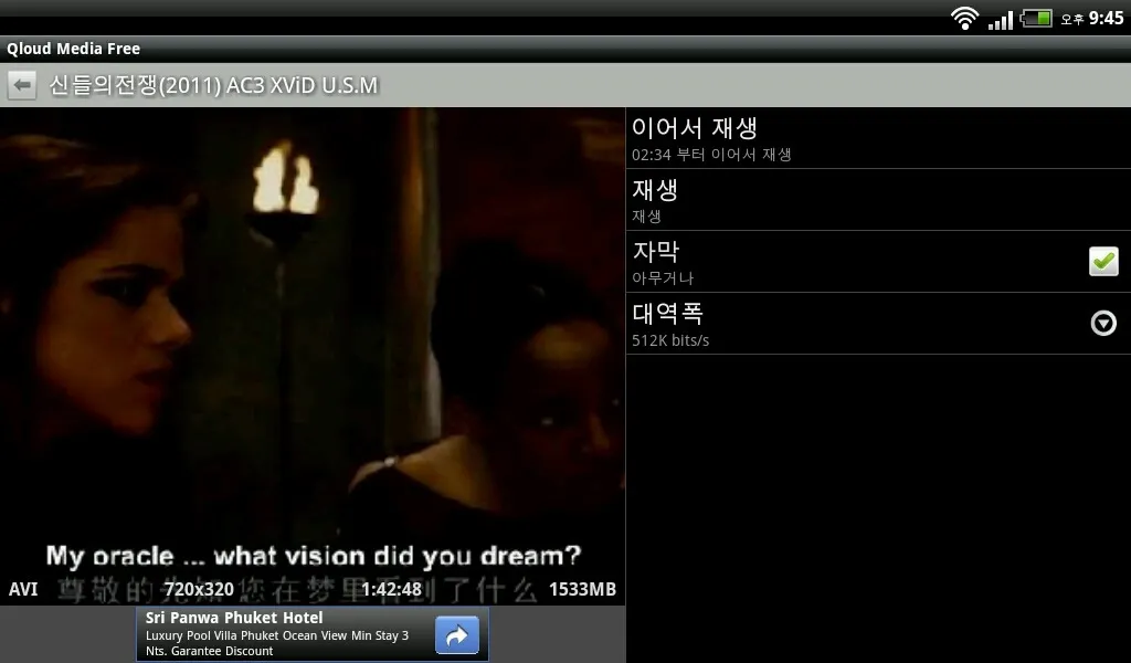 동영상 재생 시는 “대역폭”에서 화질을 선택할 수 있다. 네트워크 성능에 따라 적절한 대역폭을 선택하면 되는데 3G 환경에서는 썩 좋은 품질을 기대하기는 힘들다.
