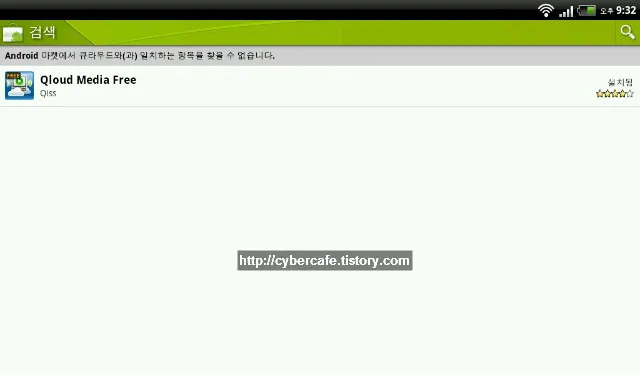 마켓에 접속하여 다음과 같이 큐라우드를 검색하여 Qloud Media Free 어플을 다운로드 받고 설치한다.