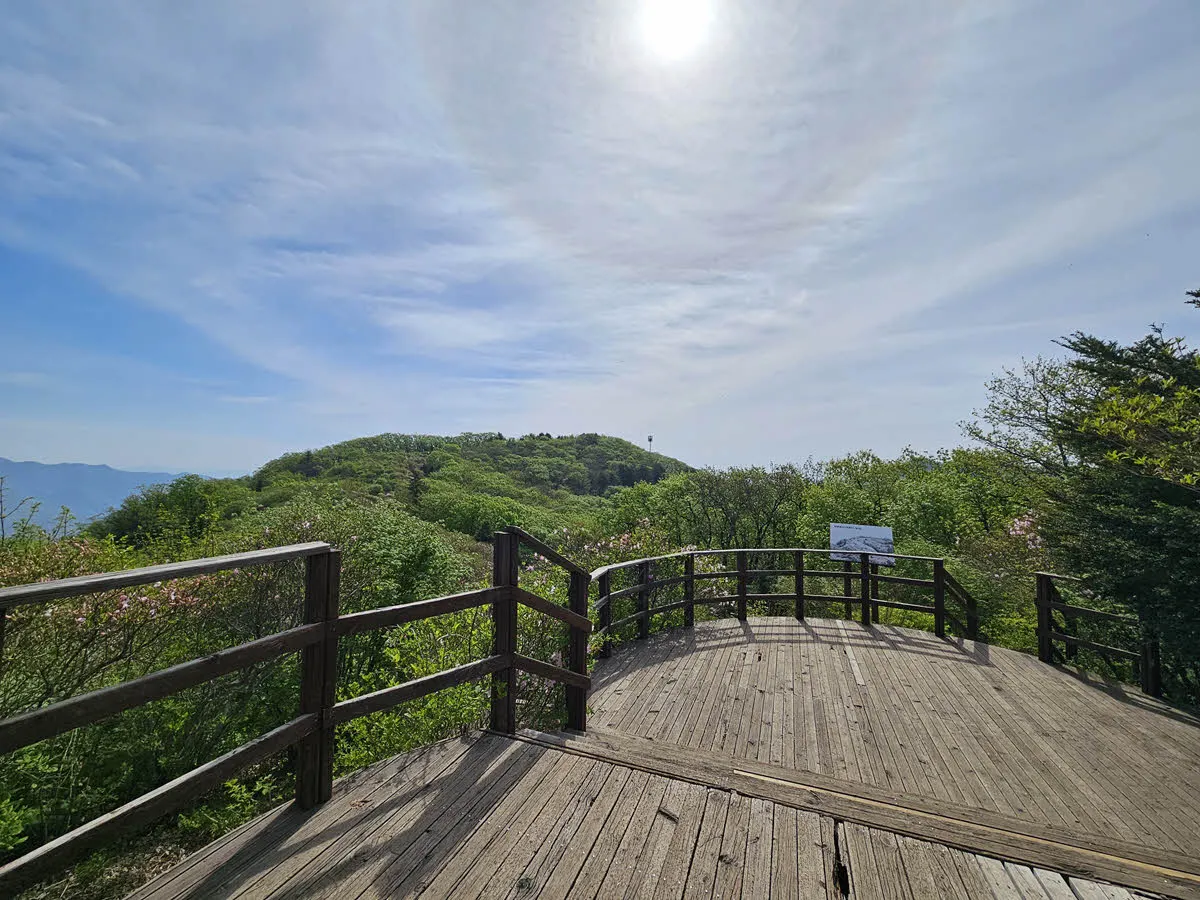 철쭉동산 한가운데에 전망대가 있다. 이 전망대는 서리산 방면을 향해있는데 서리산 정상까지 200~300m 구간에 한반도 모양의 철쭉 자생지가 있어 유명해진 듯 하다.