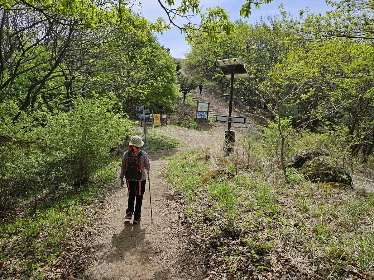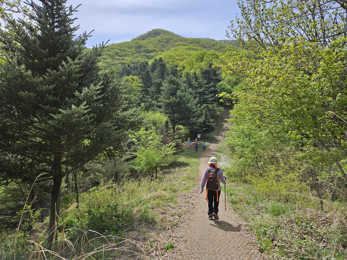 그런데 이 길이 또 멋드러진다. 깊은 숲속길도 아니고 그렇다고 임도도 아닌 걷기에 정말 좋은 숲길이 이어진다.