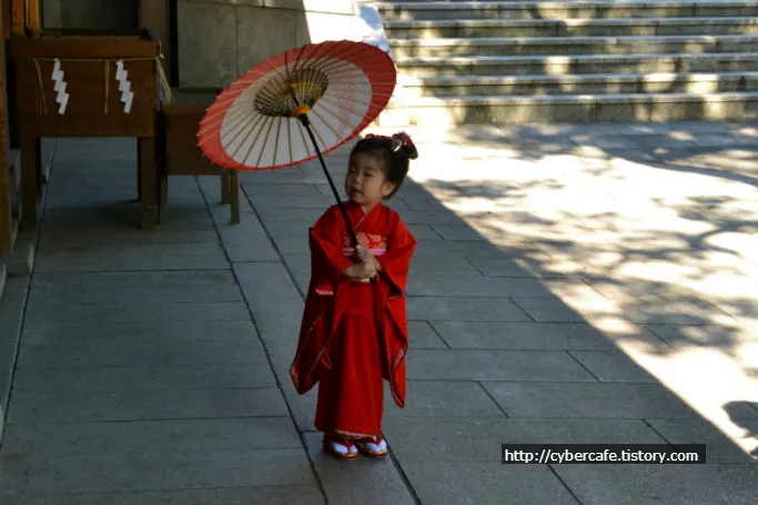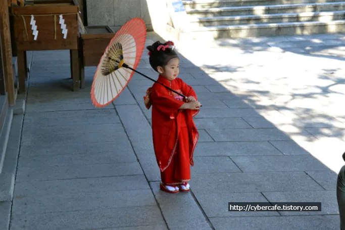 이때가 11월 초… 주말.. 무슨날인지는 모르겠지만 아이들에게 기모노를 입혀서 데리고와 이렇게 사진을 찍는 풍습(?)이 있는 듯 하다. 아이얼굴에 진한화장을 해놔서 조금 아쉽긴 했지만 그래도 앙증맞고 귀여웠다.