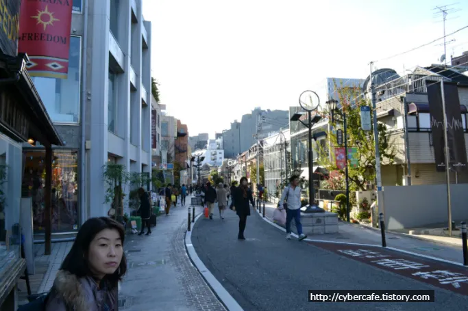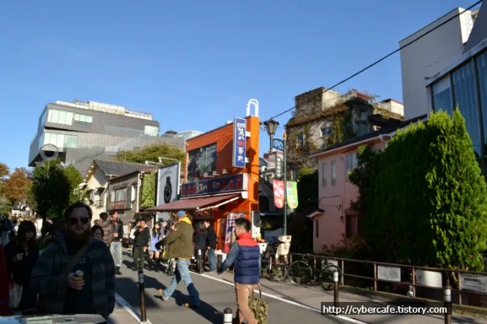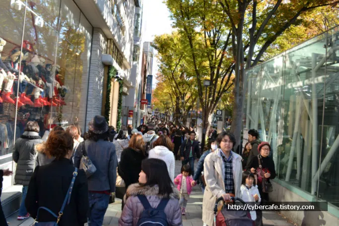 정면이 하라주쿠 역이고 사진을 찍는 뒷쪽이 오모테산도역 쪽이다. 도로의 좌우에는 명품(?) 샵이 즐비하다. 이 거리는 사실 자연을 좋아하는 나로서는 별로 땡기는 매력은 없었다. 하지만 많은 여성들이 좋아하는 거리다. 이 도로의 이면도로에는 작은 카페, 공방 등 아기자기한 볼거리들이 꽤(?) 있다고 한다.