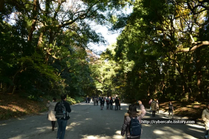 메이지 신사로 걸어들어 가는 길… 주말이라 사람이 많았다.