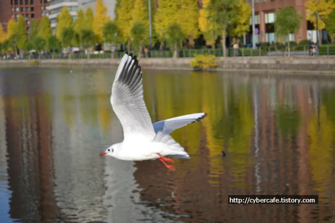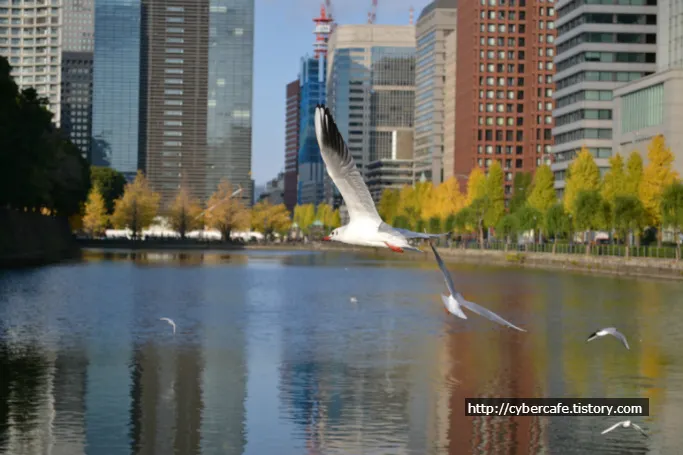 도쿄가 바닷가 도시이긴 하다지만..시내 한복판 호수에 갈매기가 날아든다. 저 갈매기가 그 유명한 유리카모메(붉은부리갈매기??)라고 한다.
