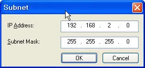 5. IP Address에 192.168.2.0 그리고 Subnet에 255.255.255.0을 입력한다.