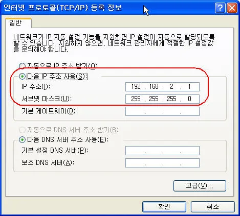 여기서는 192.168.2.1을 지정하도록 한다. 192.168.2.0 네트워크에 대한 설정은 NAT에서 사용되므로 기억하도록 한다.