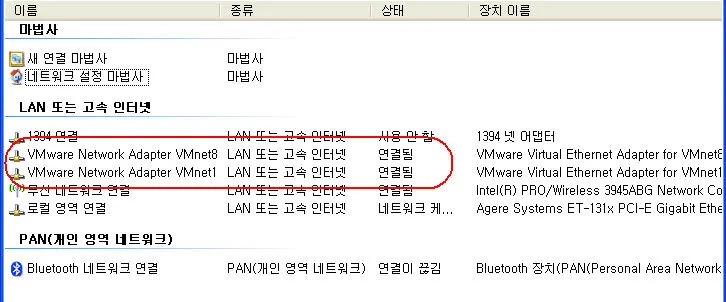 1. VMWare가 설치되어 있다면 다음과 같이 VMNet 어댑터가 활성화 되도록 한다.