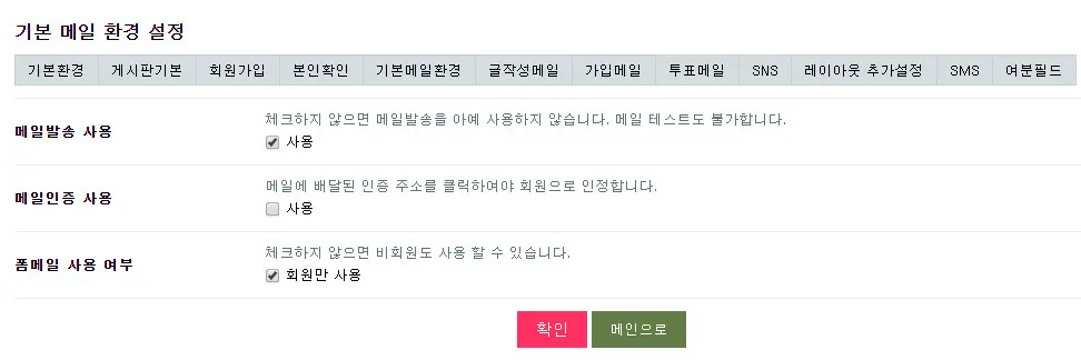 그누보드의 이메일 사용 설정