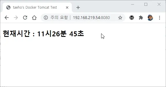 테스트 용으로 접속 시간을 알려주는 JSP 소스를 기본페이지 파일명인 index.jsp에 넣어 호스트 컴퓨터에서 만들어준다.
