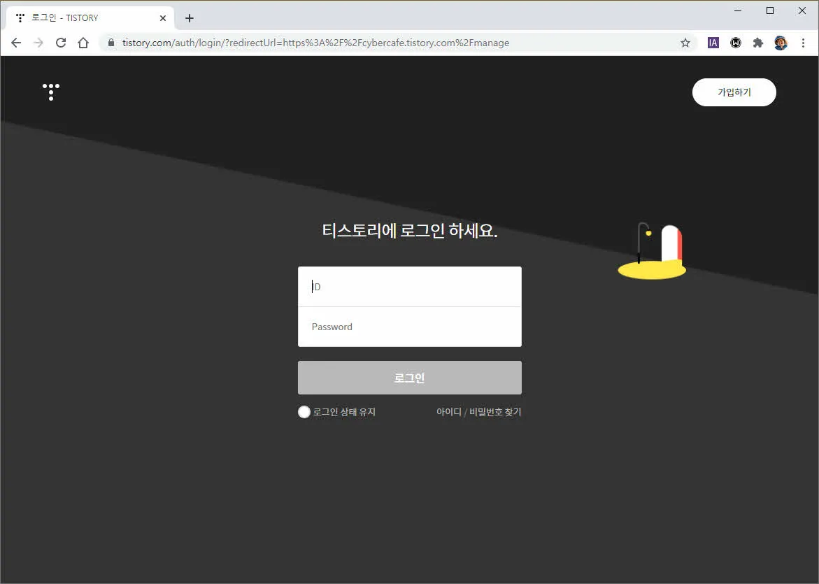 티스토리 로그인 페이지