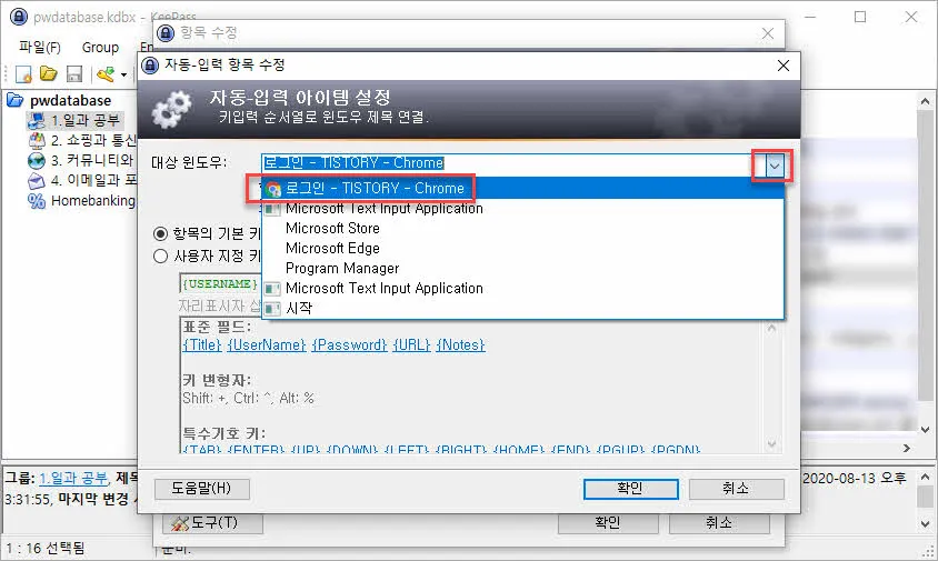 keepass 자동입력 아이템 설정